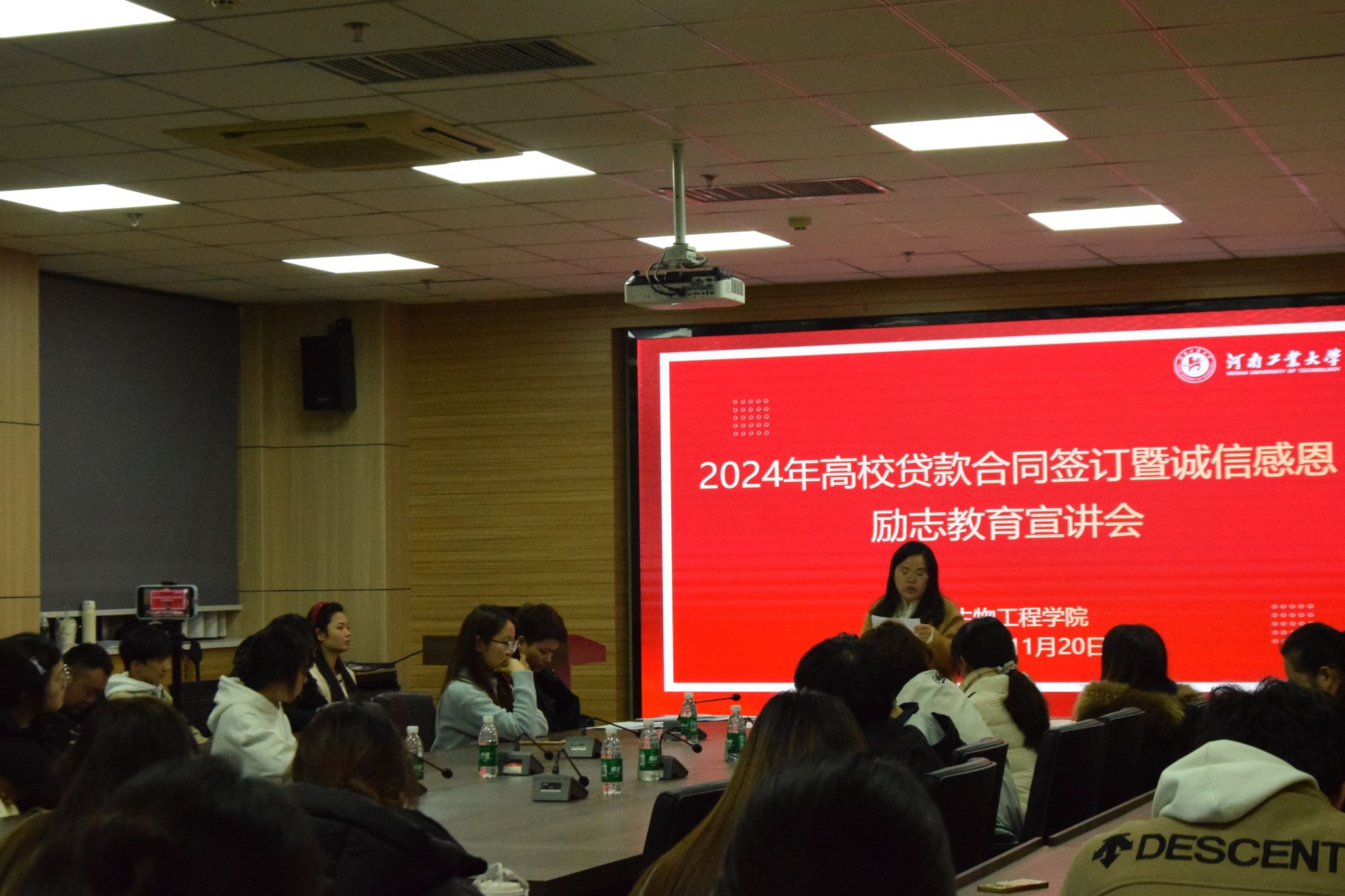 在惟德楼1313会议室召开2024年高校贷款合同签订暨诚信感恩励志教育宣讲会,学院资助工作负责人苏雪玲老师、资助工作助理及申请2024年高校贷款的学生参加了本次会议。