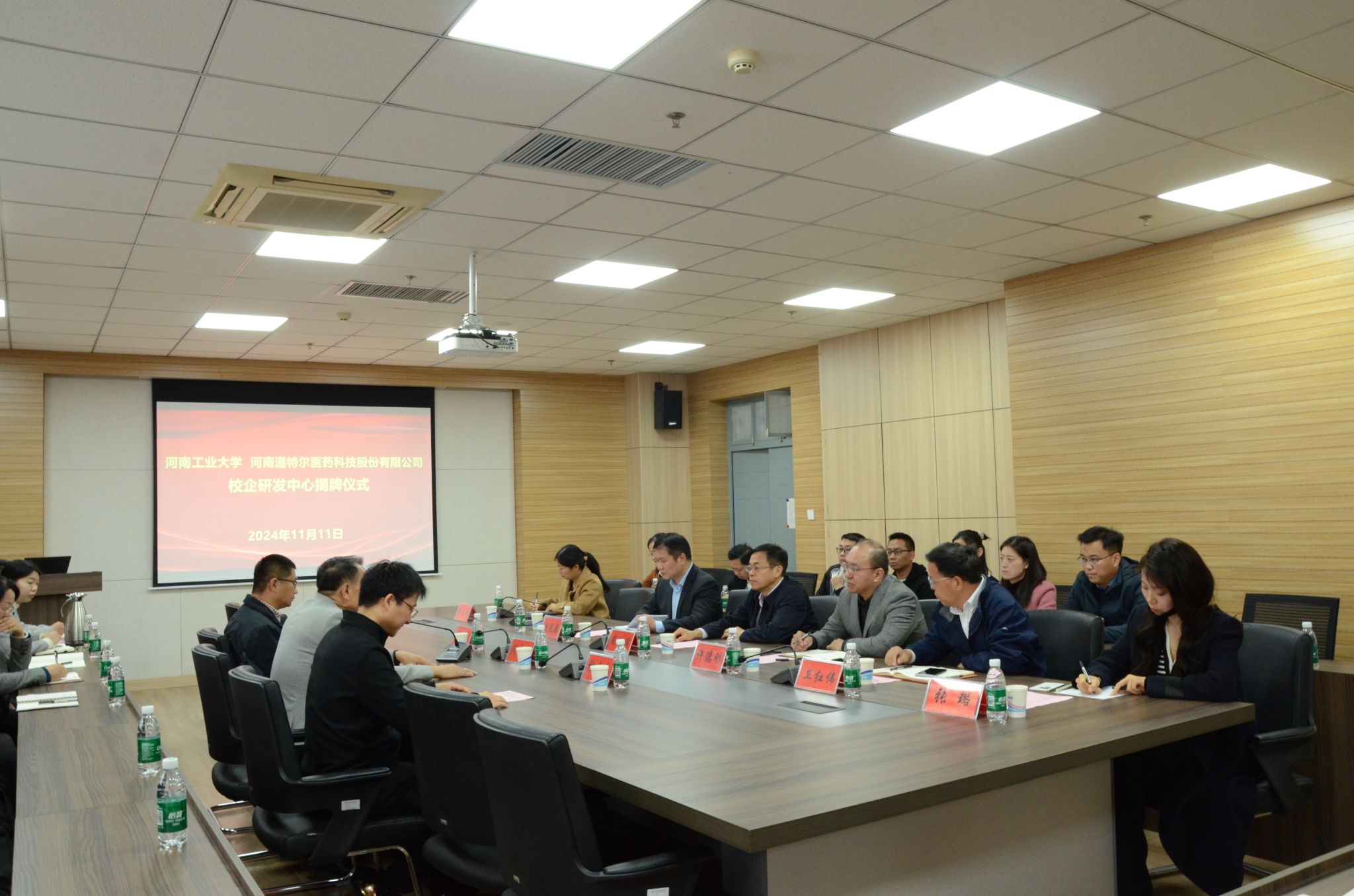 为深入推进校企合作、产教融合,进一步推进科技创新和人才培养,11月11日上午,学校与河南道特尔医药科技股份有限公司在惟德楼1313会议室举行校企研发中心揭牌仪式。河南道特尔医药科技股份有限公司董事长闫永生、首席研究员戎伟、研究室主任张来忠,河南工业大学党委副书记、工会主席周相寅、产业技术研究院院长许德刚,小说阅读网