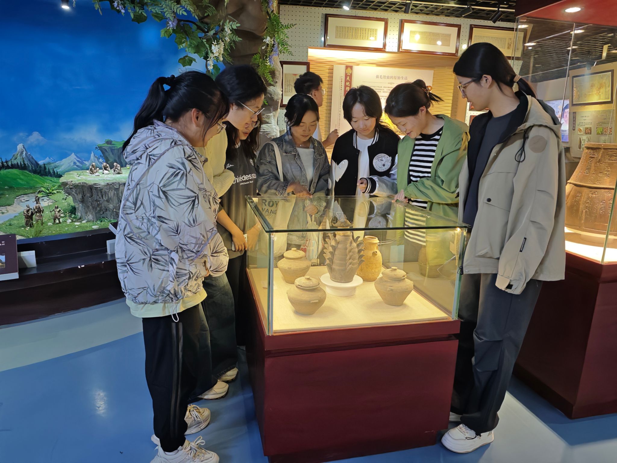 在辅导员的带领下,同学们还参观了粮食生产以及加工的模型和生动形象的图文,在一个个逼真的模型面前同学们被伟大的劳动人民的智慧所震撼;在一幅幅生动的图文演示下,同学们感动于古代劳动人民敢于与自然做斗争的魄力和勇气。