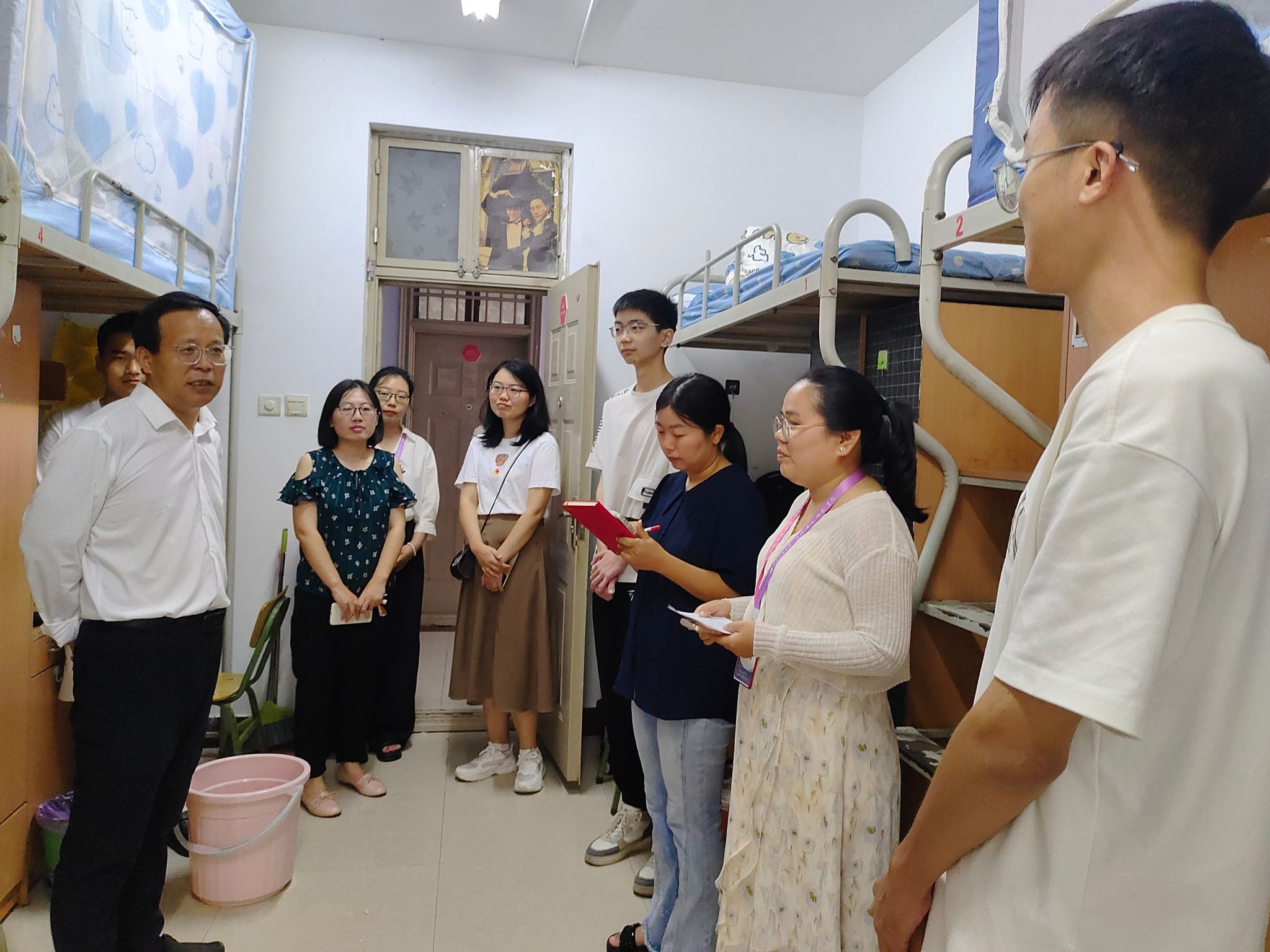 领导关怀温暖人心。新生报到当天,学院党委书记卫红伟、副书记蔡永平以及辅导员老师走进学生宿舍看望新生,查看新生的住宿条件,了解新生入校后的状态,卫红伟鼓励新生们要尽快适应大学生活,做好学业规划,并叮嘱大家注意人身安全、财产安全,谨防网络诈骗。同学们表示会努力学习,珍惜美好的大学生活。
