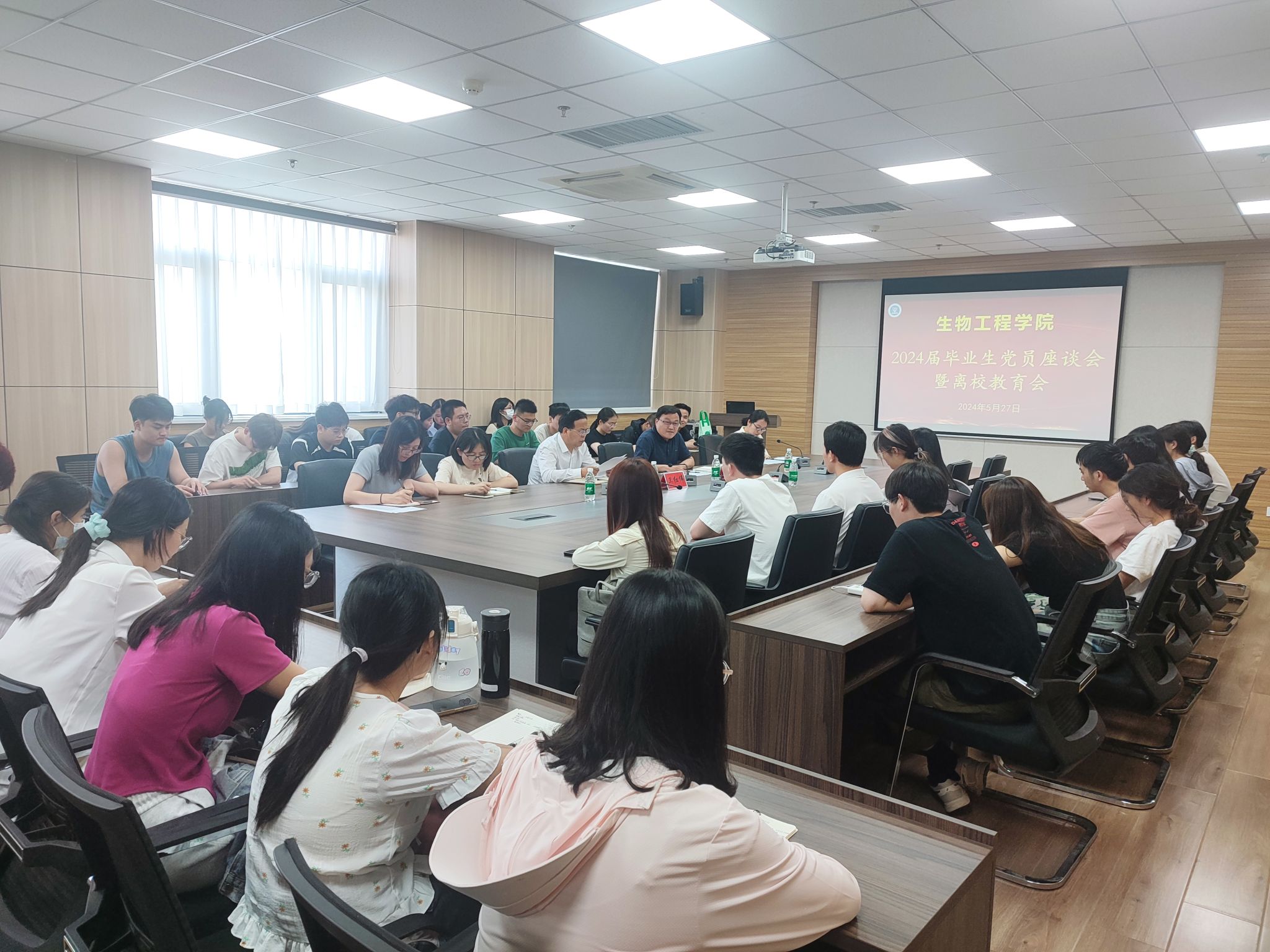 在惟德楼1313会议室召开2024届毕业生党员座谈暨离校教育会。学院党委书记卫红伟、副书记余汉华、学工办主任岳媛媛、学院辅导员、毕业生党员代表参加会议。会议由学院辅导员张国静主持。