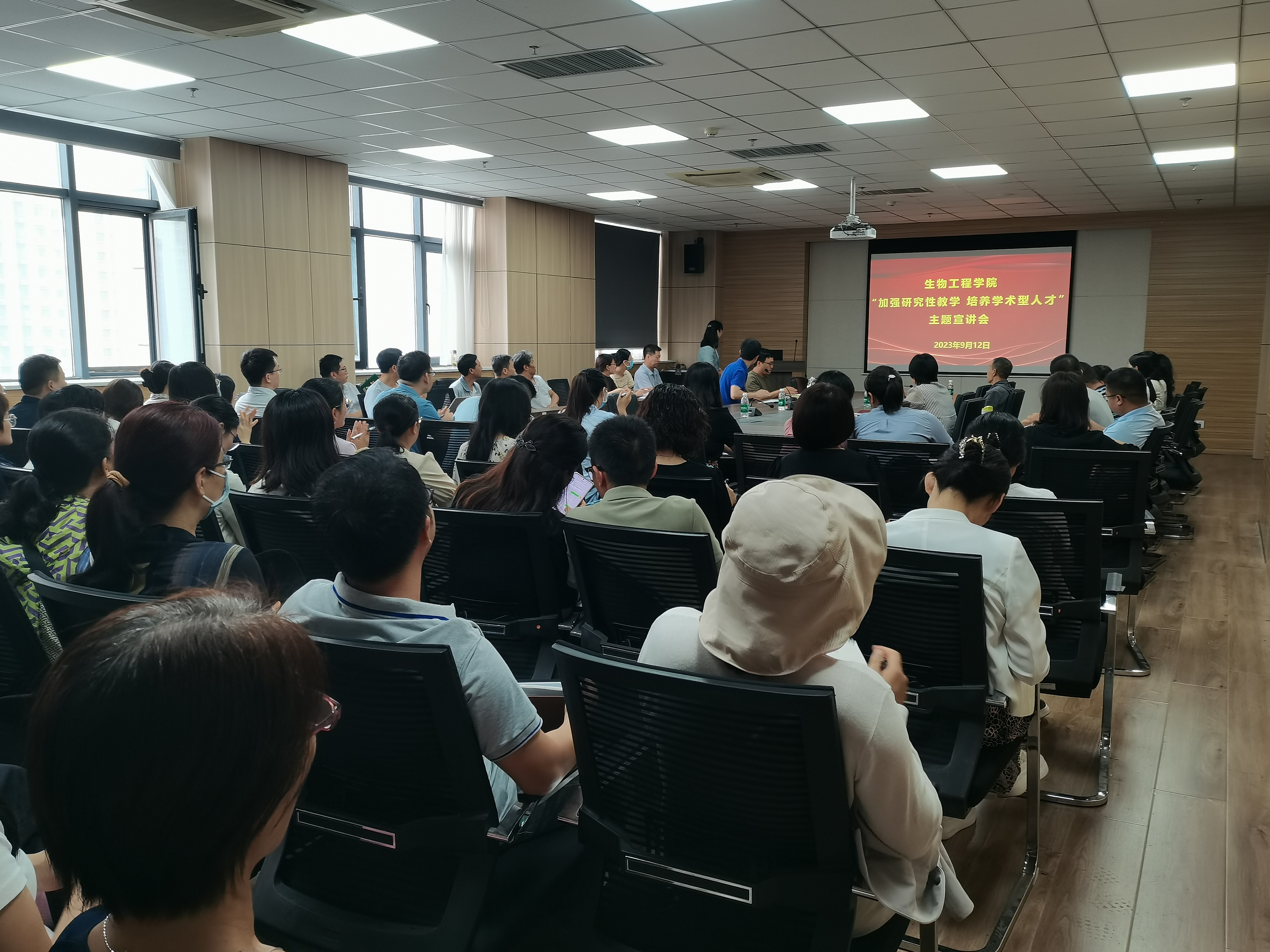 邀请付麦霞教授在1313会议室为全体教师进行了 “加强研究性教学,培养学术型人才”主题宣讲会,会议由教学副院长崔柳青主持。