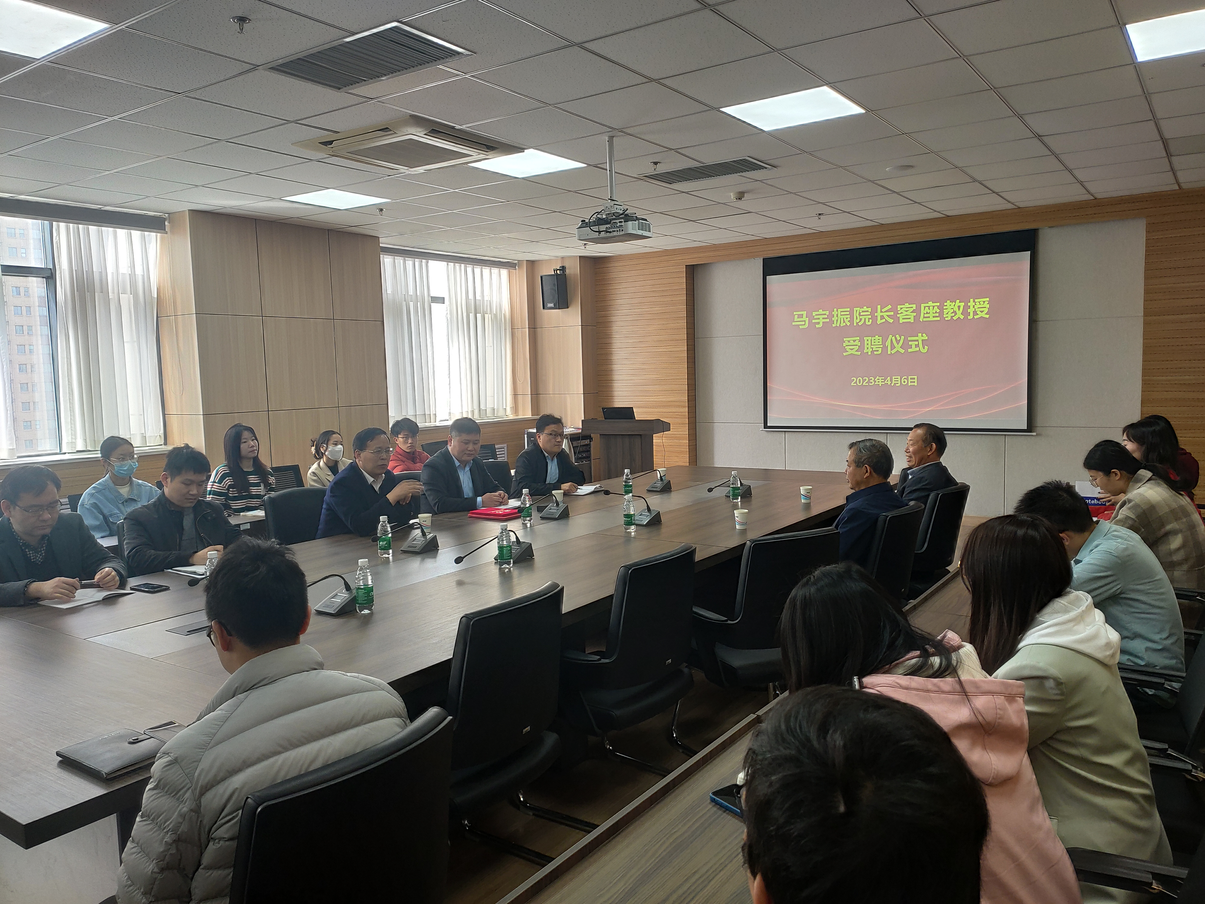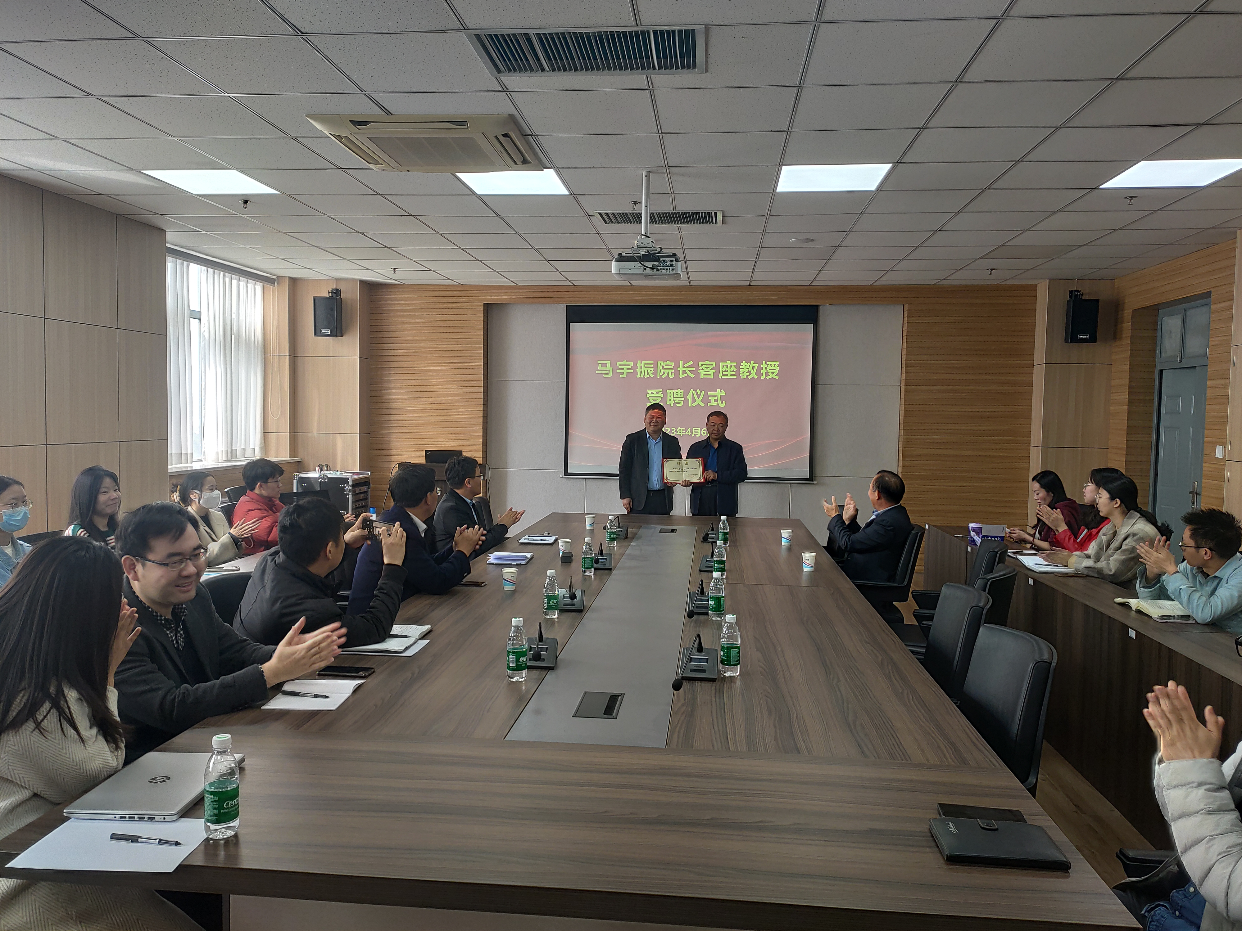 院长胡元森为马宇振院长颁发客座教授和企业导师聘书,学院副书记兼副院长余汉华及部分教师、研究生代表参加。