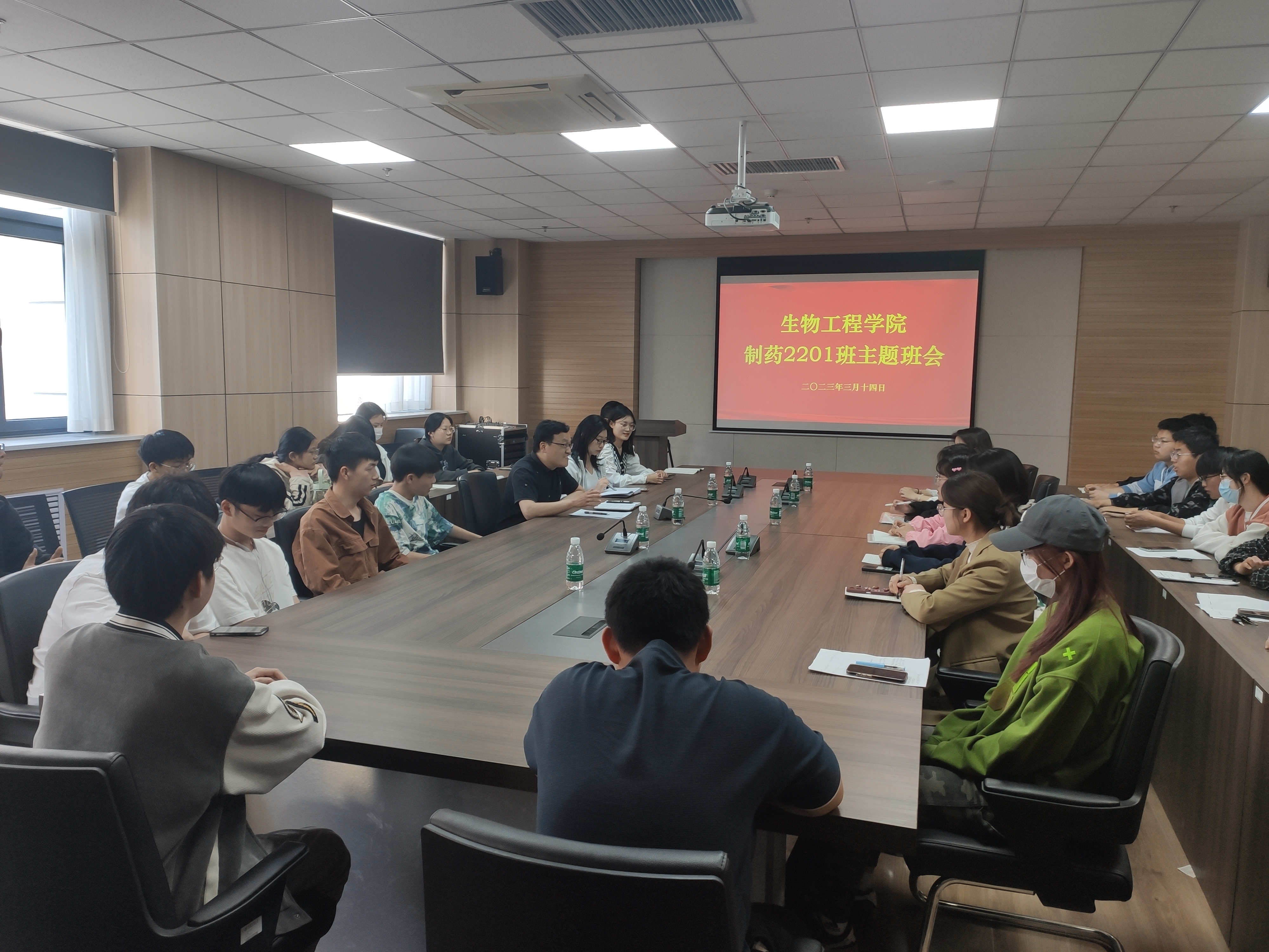制药工程2201班在基础实验实训中心1313会议室召开了新学期班级第一次线下班会,学院党委副书记兼班主任余汉华、辅导员张国静、班级助理刘宸昊以及制药工程2201班全体学生参加会议。班会由余汉华主持。