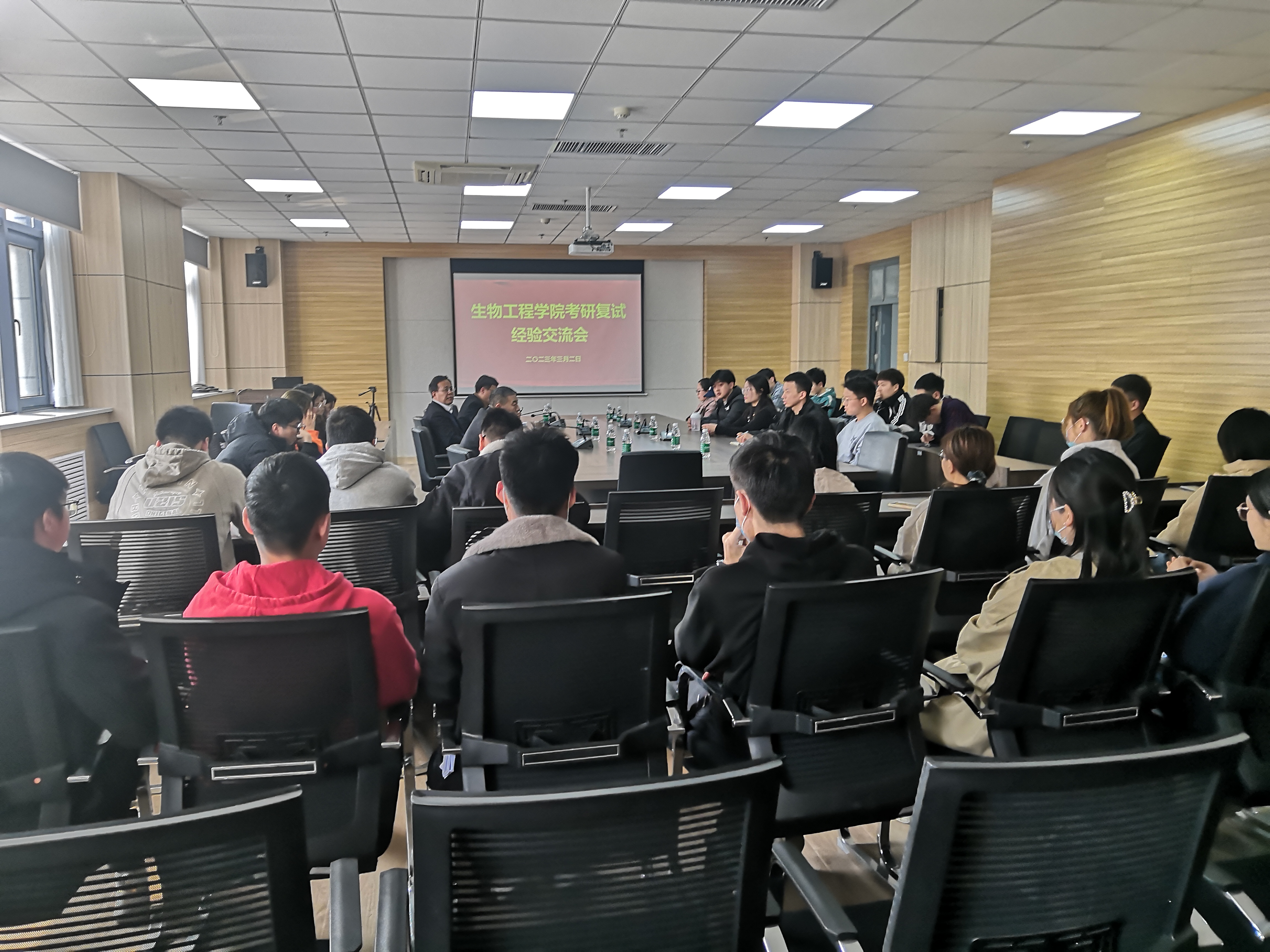 在基础实验实训大楼1313会议室举行考研复试经验交流会。学院党委书记卫红伟,副书记余汉华,副院长惠明和全体辅导员及2019级考研同学参加了交流会。
