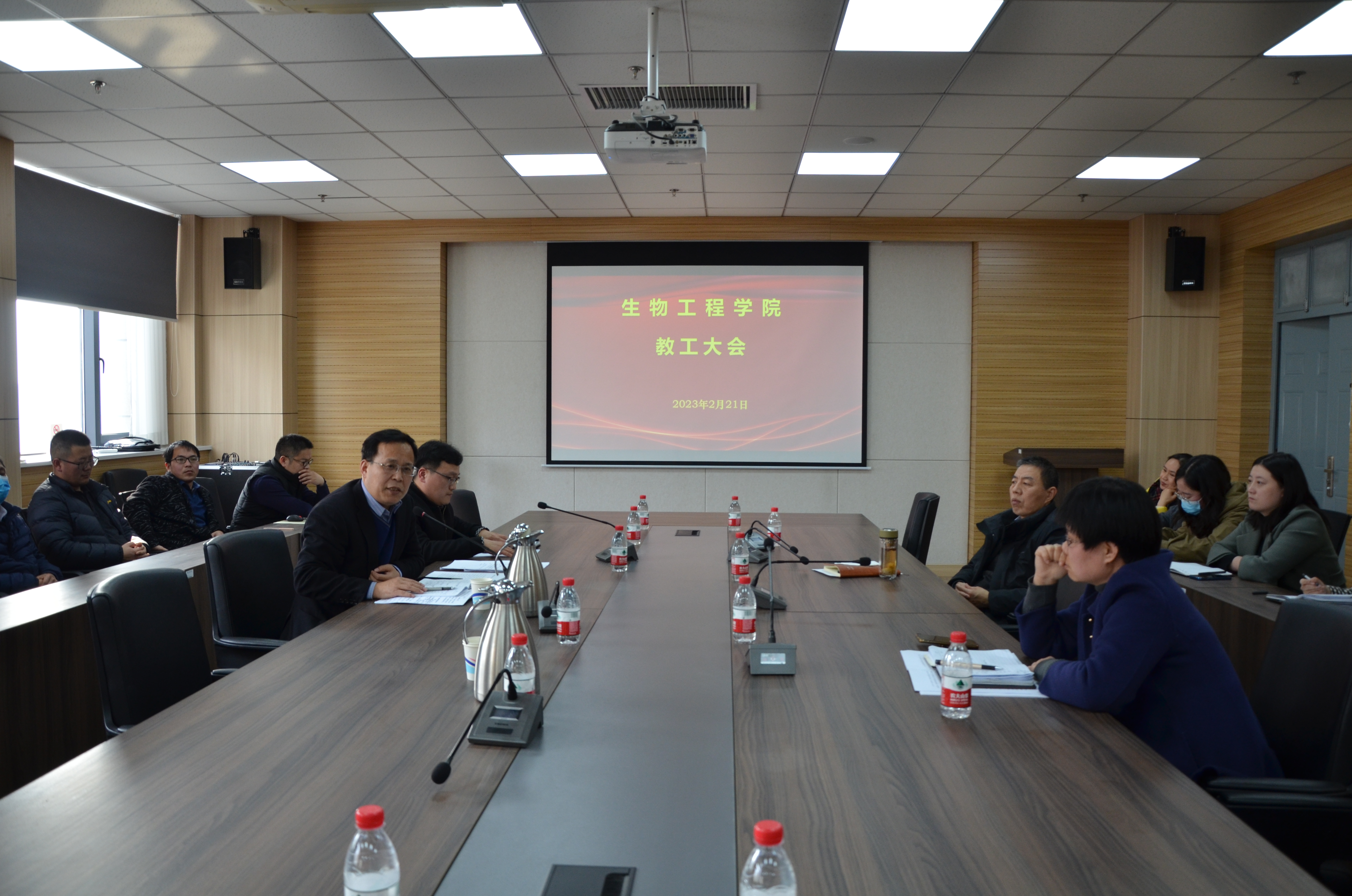 在基础实验实训中心楼1313会议室召开全体教工大会,部署新学期各项工作。学院领导班子成员以及全体教工参加了会议。会议由院党委书记卫红伟主持。