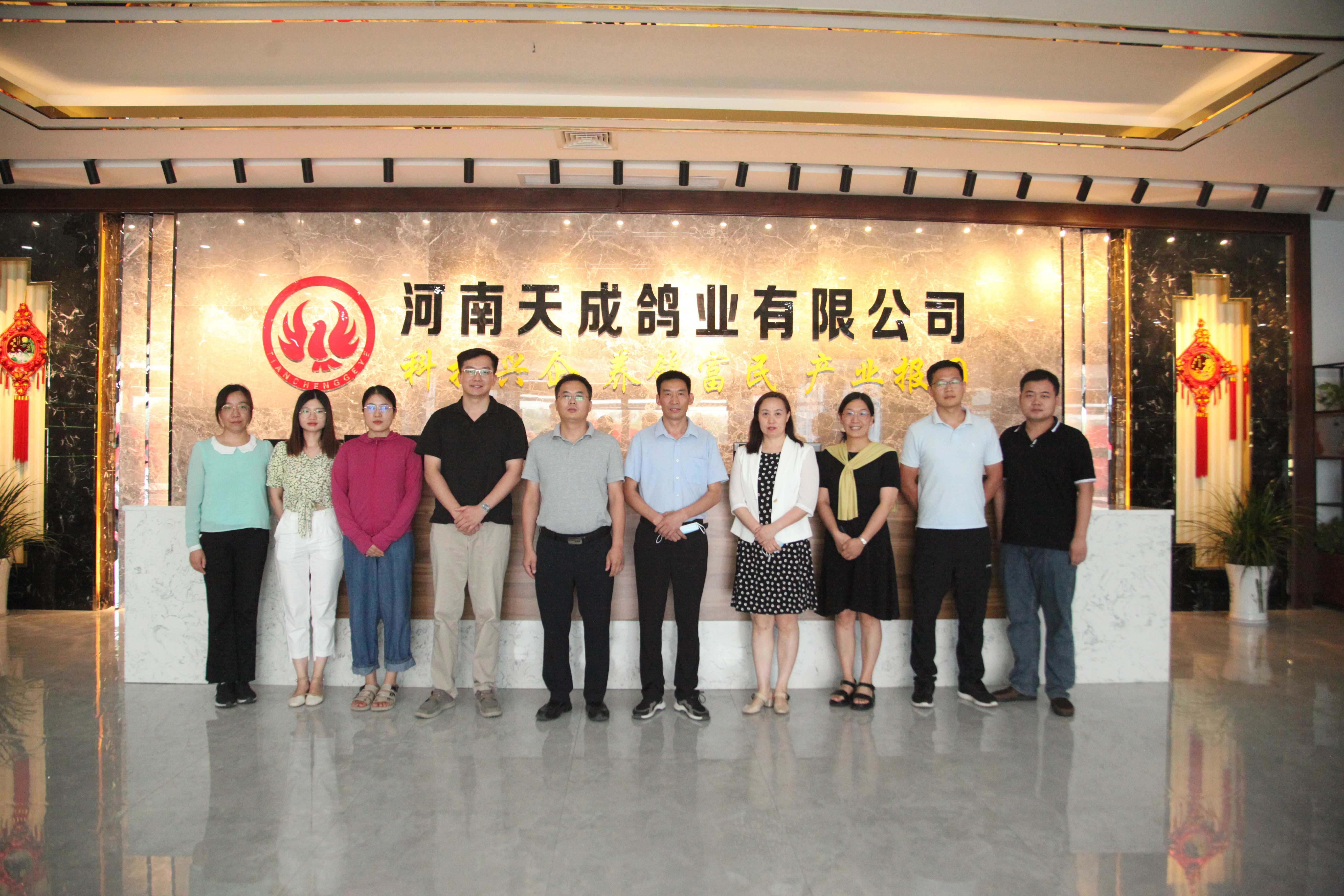 动物科学系王金荣教授一行8人于8月4日赴河南舞钢天成鸽业有限公司进行调研,受到天成鸽业董事长杨明军、总经理李玉霞等人员的热情接待。