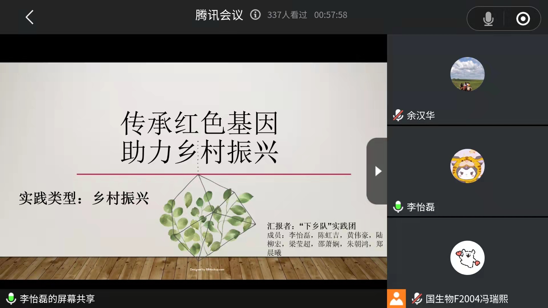 院学生会创新实践部冯瑞熙同学结合PPT对社会实践过程、调研报告撰写、宣传报道等多方面进行了经验交流。21年优秀实践团队代表李怡磊同学从活动的准备、过程、成果三个角度详细讲解了实践团队成长的过程,为大家提供了具有启发性的活动思路。