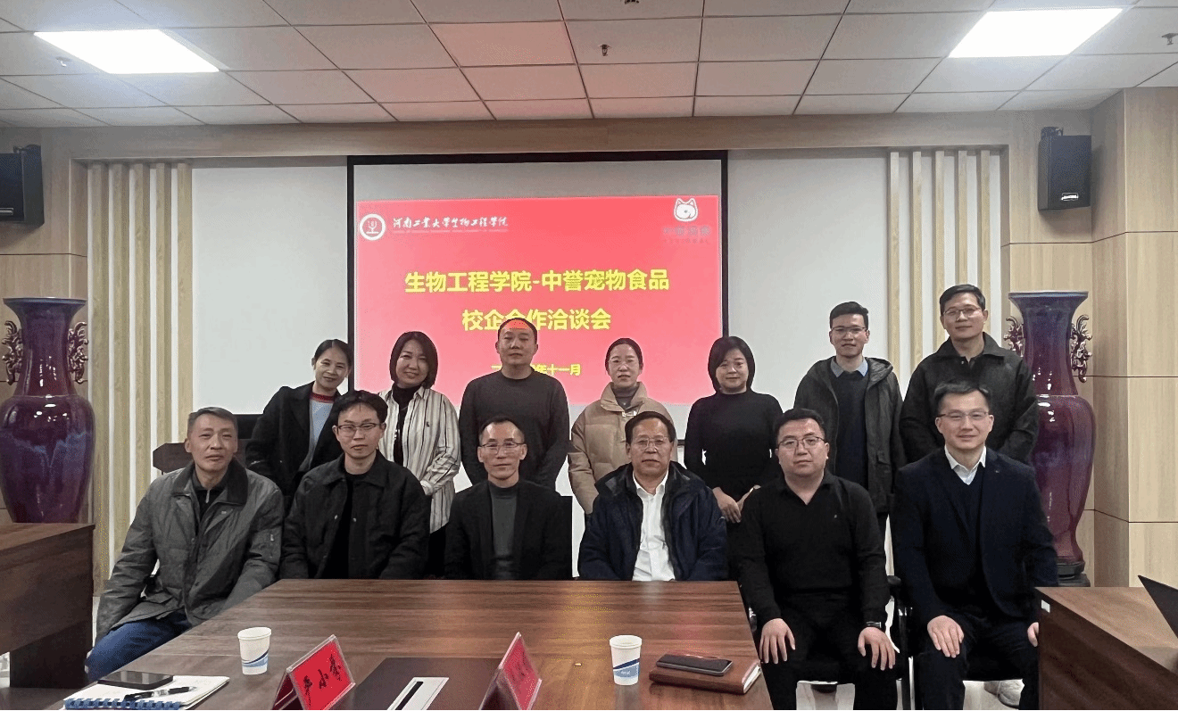 与中誉宠物食品(漯河)有限公司在惟德楼1318会议室举行校企合作座谈会。中誉宠物食品(漯河)有限公司总经理汤化钢、人力资源部经理严小芬、事业部经理王治洋,漯河市召陵区组织部人才服务中心主任于中潮,小说阅读网