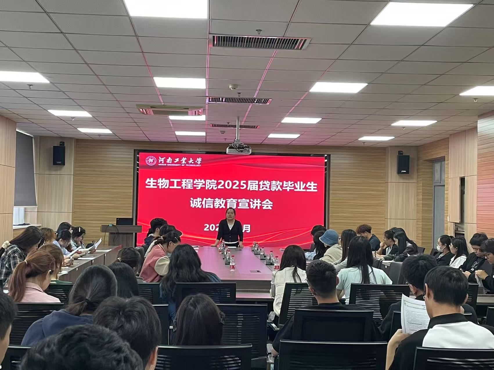会上,苏雪玲传达了学校资助中心关于2025届贷款毕业生贷后管理工作的会议精神,并对学院相关工作进行安排。她详细讲解了毕业确认申请的流程、个人信息更新维护的方法、提前还款的方式及支付宝的操作方法等相关事宜,并向贷款毕业生发放了《河南工业大学2025届贷款毕业生温馨提示》。随后,与会人员围绕贷款政策和实际问题展开交流。苏雪玲针对学生普遍关心的问题进行现场答疑,并结合往届毕业生诚信履约的典型案例,深入解析国家助学贷款政策与个人信用体系的联动机制,着重强调诚信还贷对毕业生职业生涯发展的深远影响。在警示教育环节,她通过具体实例揭示违约行为的显性代价与隐性影响,包括信贷受限、职业发展瓶颈及法律追责等问题,引导毕业生深刻认识诚信还贷的重要性。她希望毕业生将按时还贷作为践行社会主义核心价值观的具体行动,既要铭记国家资助政策的温暖关怀,更要通过诚信履约实现从“受助者”到“守信者”的成长蜕变,以实际行动回馈社会关爱,传承诚信美德。