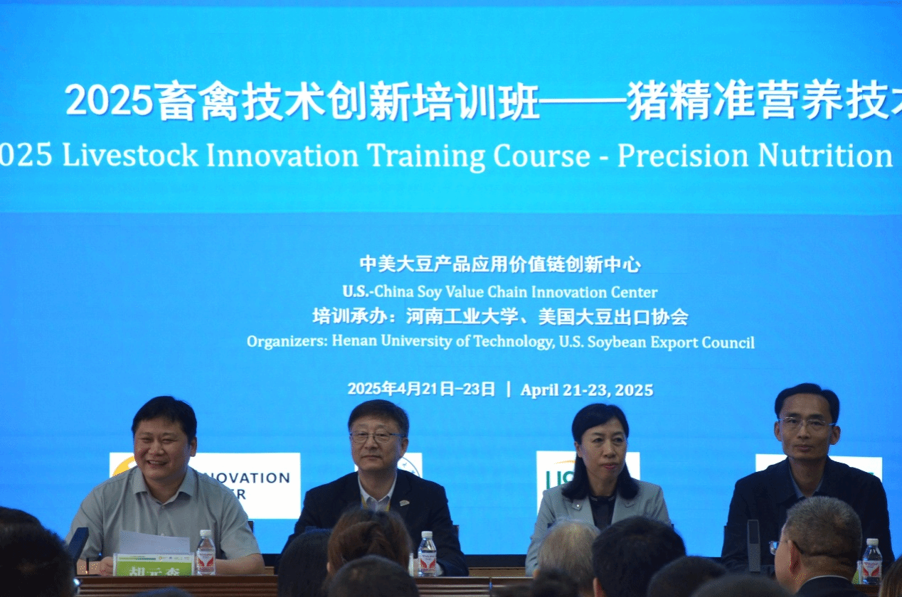 为进一步推进畜禽技术进步,搭建创新与发展交流平台,赋能产业转型升级,由中美大豆产品应用价值链创新中心主办,美国大豆出口协会、河南工业大学承办的“2025畜禽技术创新培训班(I)-猪精准营养技术培训班”,于4月21日至23日在我校顺利举行。60余位行业专家、企业代表参加了此次培训。