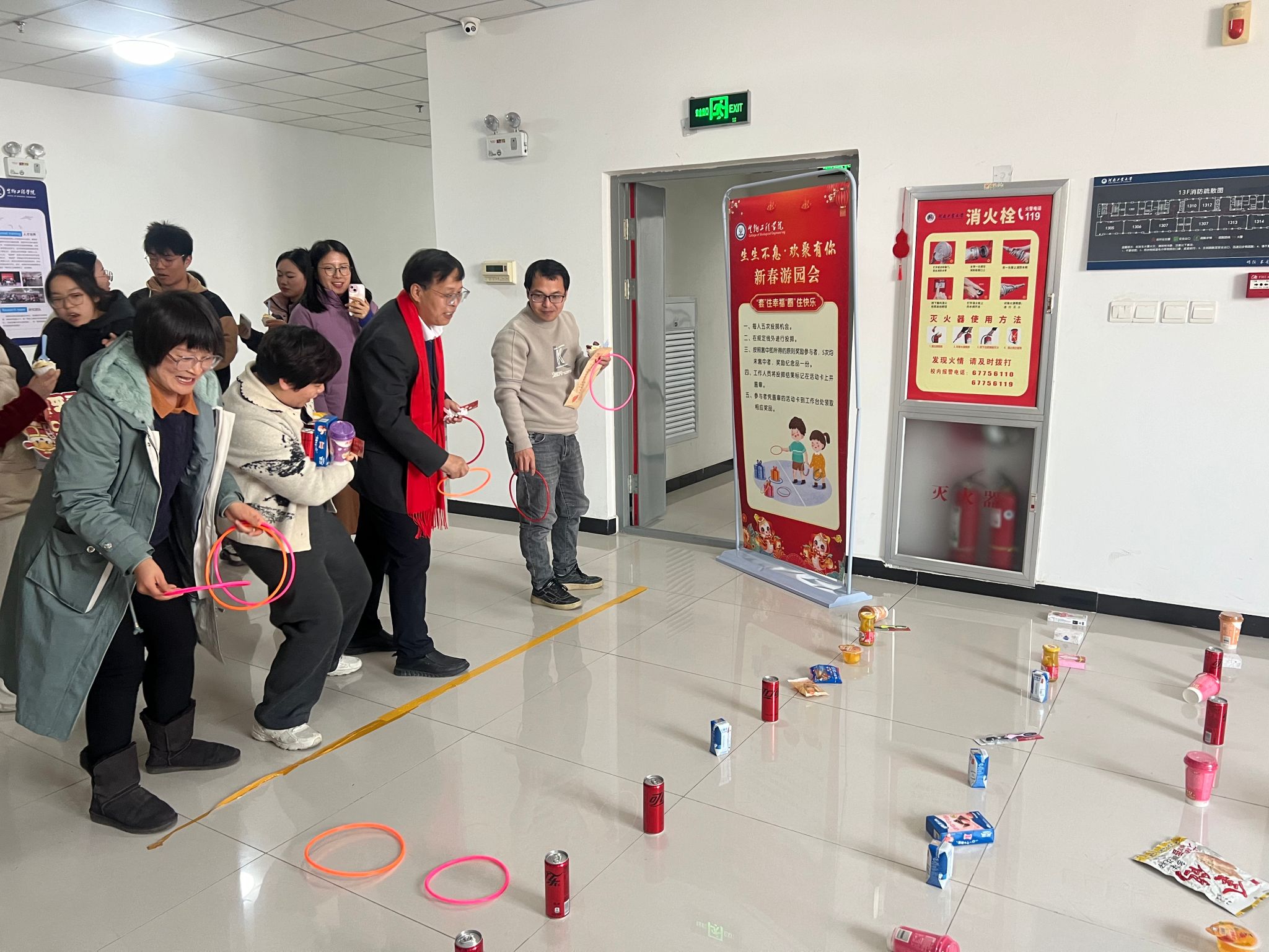 在惟德楼13楼举办迎新春游园会,学院党委书记卫红伟、院长胡元森、领导班子成员及全体教职工欢聚一堂,共贺新春。