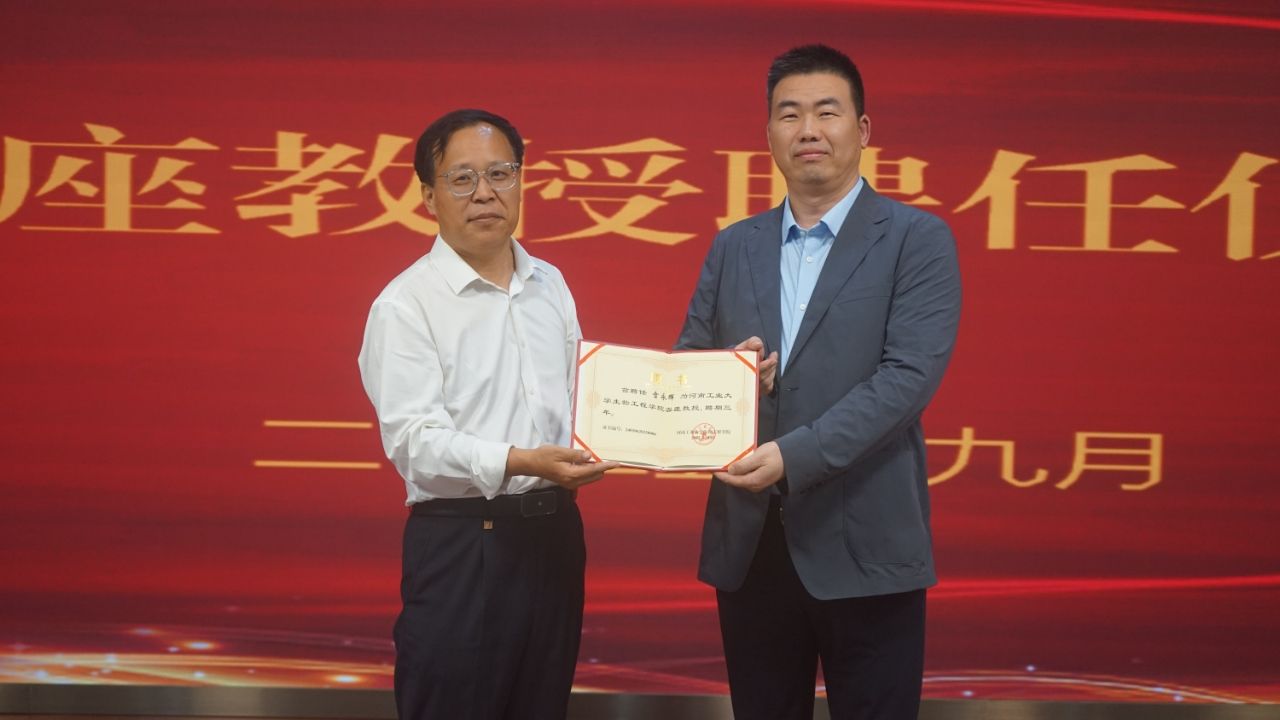 聘任仪式上,卫红伟为雷永辉颁发“客座教授”聘书。