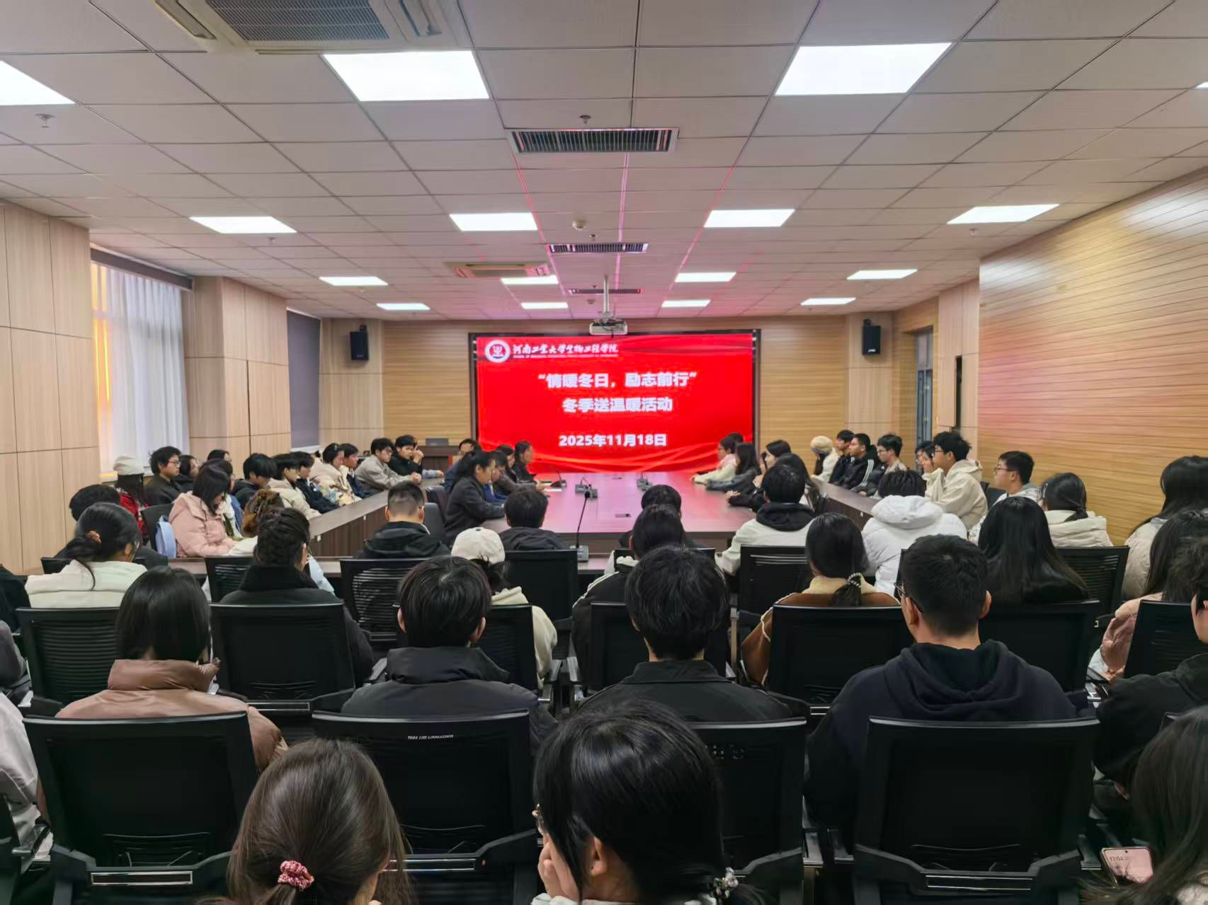 精心策划并成功举办了“情暖冬日,励志前行”冬季送温暖主题活动。此次活动旨在将学院的关怀与温暖传递到每一位需要帮助的学子心中,营造互助友爱、励志奋进的和谐校园氛围。学院党委书记卫红伟、党委副书记蔡永平出席活动,全体辅导员及50余名学生代表参加了活动。活动由学工办主任岳媛媛主持。