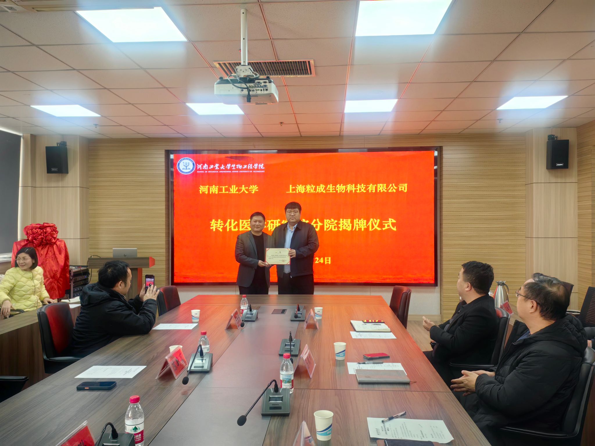 设立“上海粒成生物科技有限公司转化医学研究院分院”。12月24日下午,双方在惟德楼1313会议室举行“转化医学研究院分院”揭牌仪式。生物工程专业08级校友、上海粒成生物科技有限公司董事长陈新页、生物工程专业09校友毕振原、校友与基金办公室主任马武刚、生物工程学院院长胡元森以及学院师生代表共同参加揭牌仪式。会议由生物工程学院副院长梁赢主持。