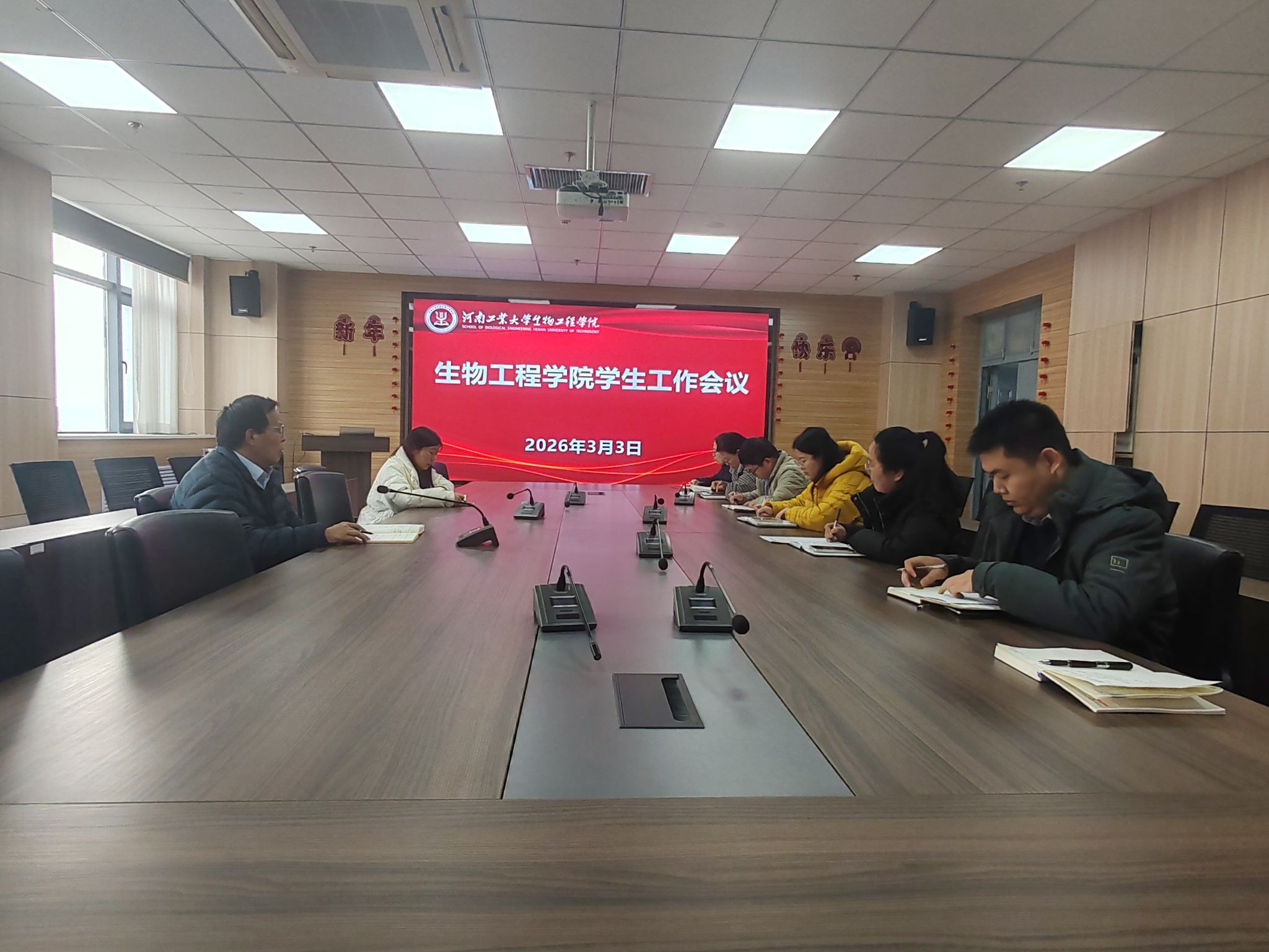在基础实验实训大楼1313会议室召开新学期学生工作会议。学院党委书记卫红伟、副书记蔡永平及全体辅导员参加了会议。
