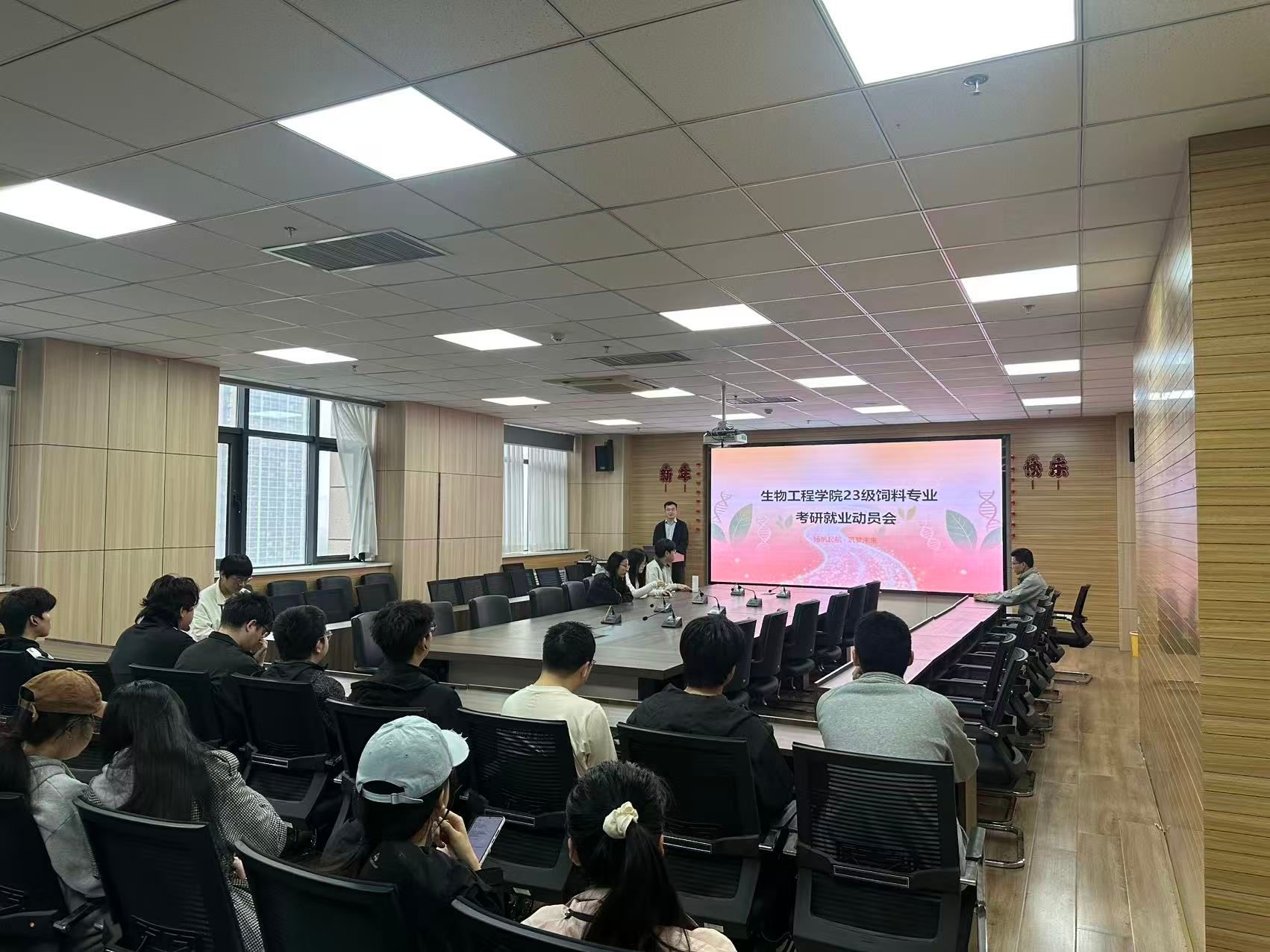 分专业有序组织召开2023级考研就业动员系列会议。本次系列会议全面覆盖生物工程、生物技术、制药工程、饲料工程四个专业,各专业系主任、辅导员及班主任出席会议,2023级全体学生参会,实现精准动员、全员覆盖。