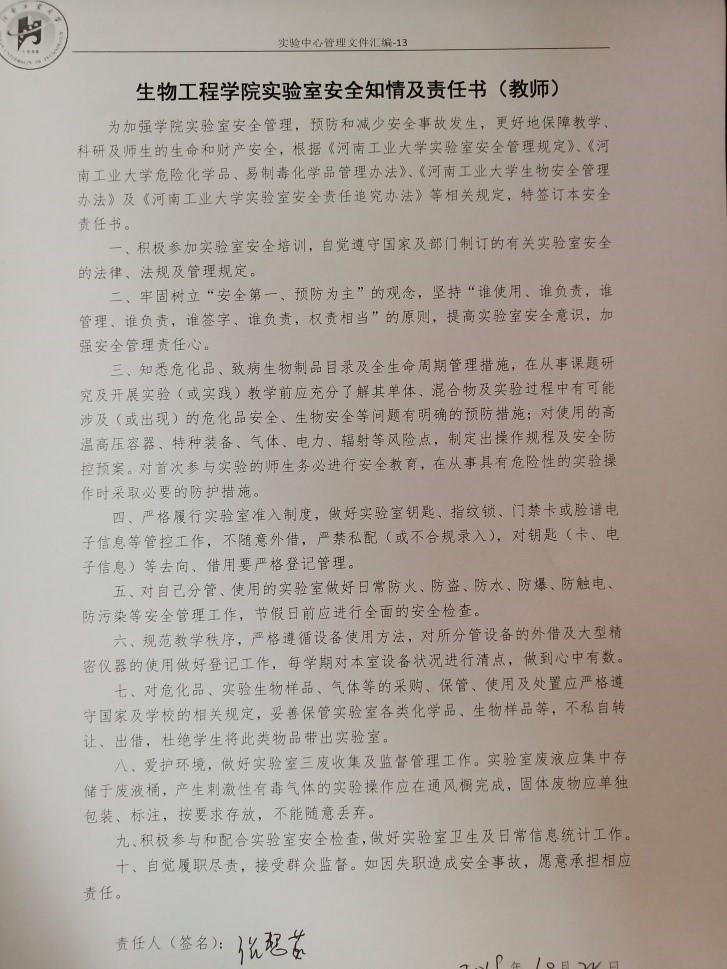 实验室安全知情及责任书(教师)》。