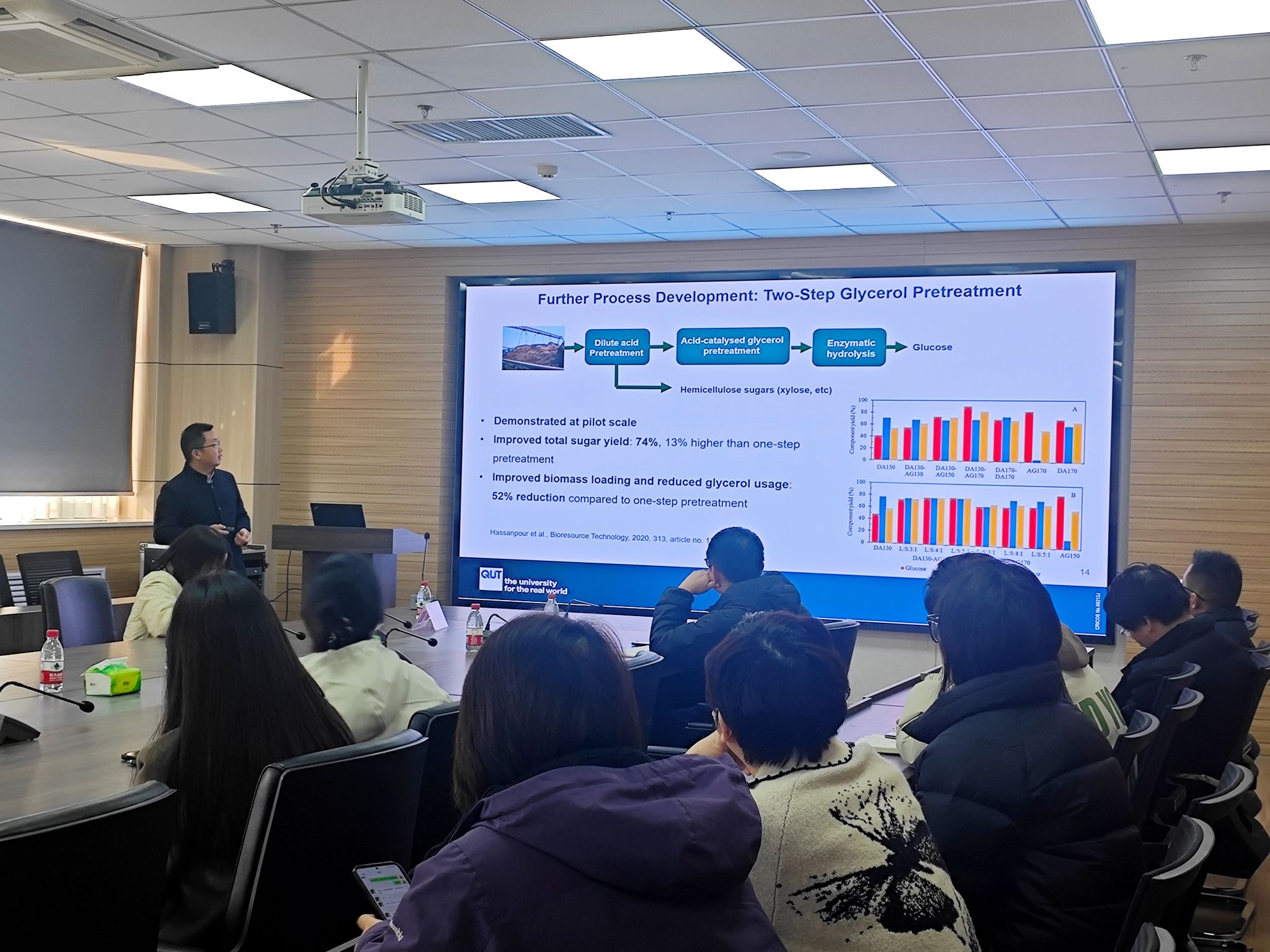 进行了题为“Lignocellulose-Derived Sustainable Functional Materials”的学术报告。报告由胡元森院长主持,学院相关专业教师、研究生及部分本科生参加。