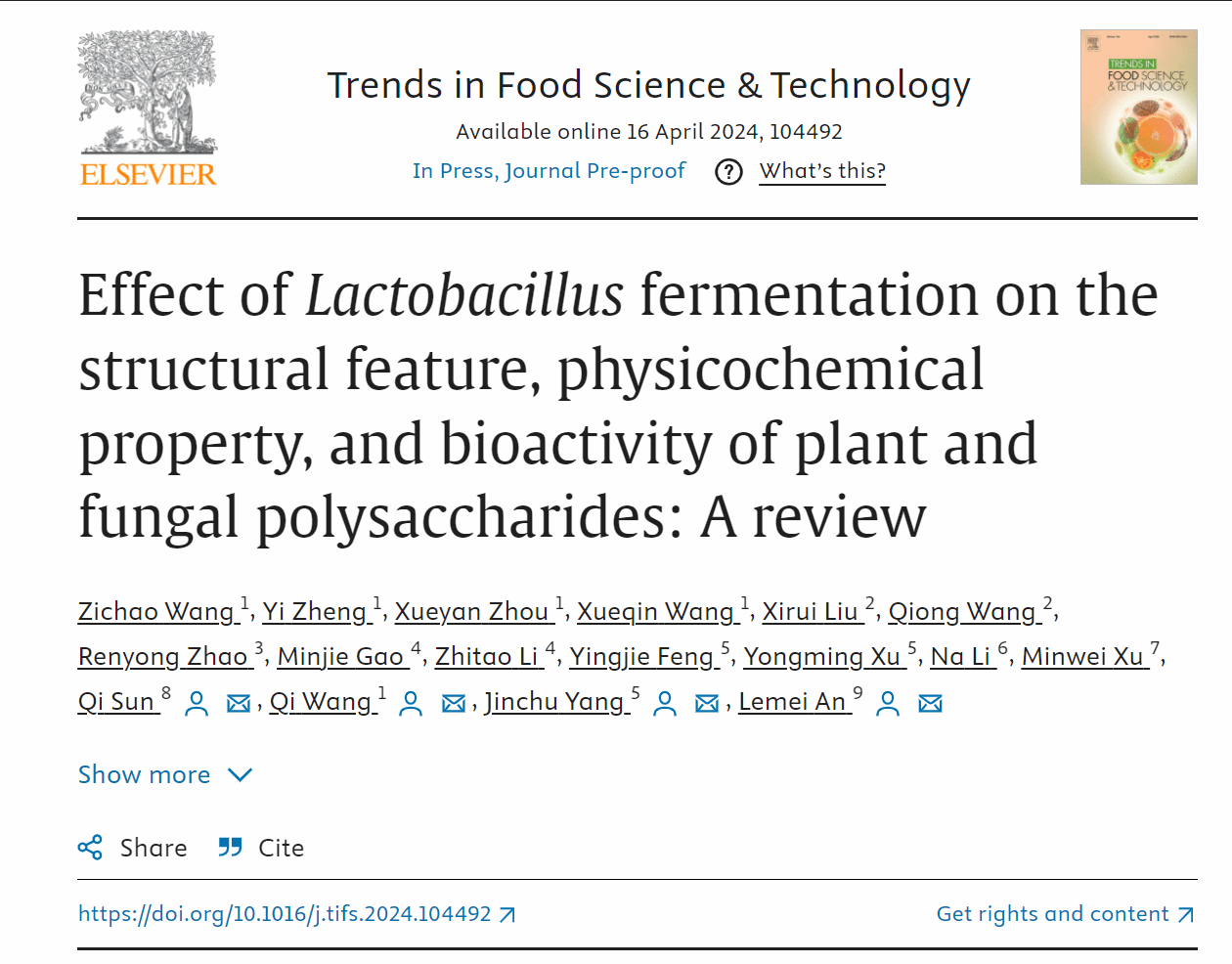 王子朝副教授课题组在食品领域国际顶级期刊Trends in Food Science & Technology(中科院一区,TOP期刊,IF = 15.3)上在线发表了题为:“Effect of Lactobacillus fermentation on the structural feature, physicochemical property, and bioactivity of plant and fungal polysaccharides: A review”的综述论文。该论文全面和系统的综述了近年来乳杆菌发酵对植物和真菌胞外多糖结构特征、理化特性、生物活性的影响。王子朝副教授是第一作者,小说阅读网