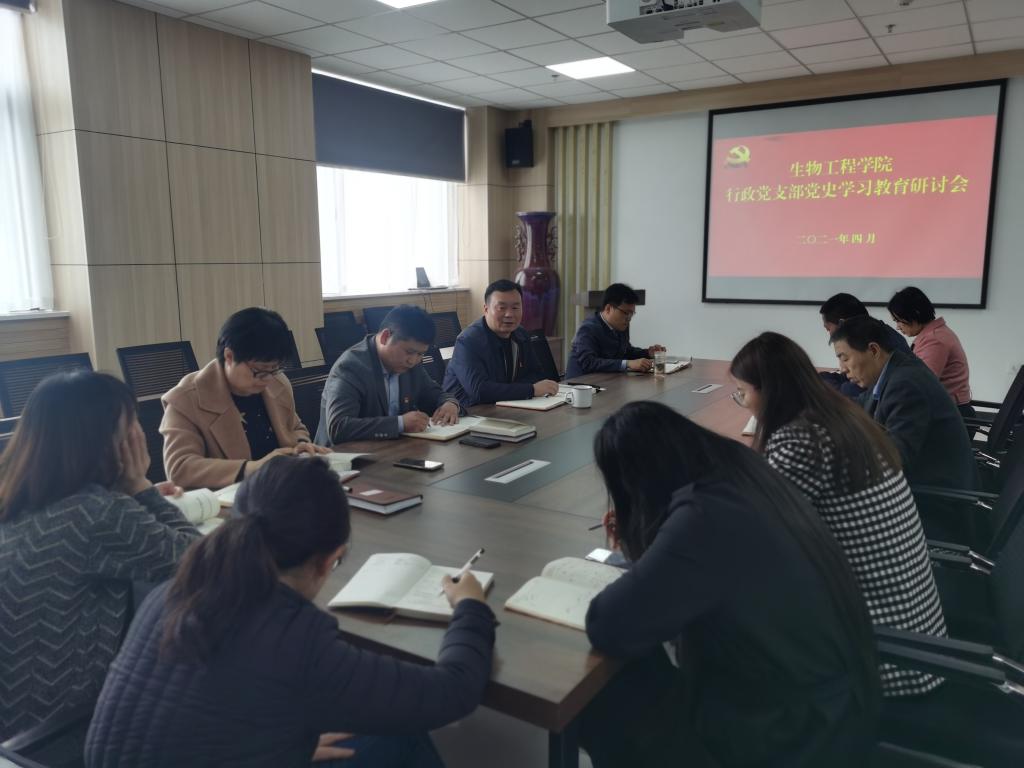 行政党支部在学院党员之家召开党史学习教育集中学习研讨会。支部全体党员参加会议,学院班子成员以普通党员身份参加了会议。学习研讨会由党支部书记贾峰主持。
