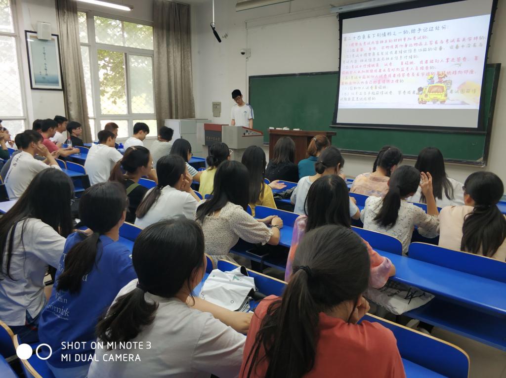 会议上,由岳媛媛老师向大家介绍《河南工业大学学生手册》内容,学习关于学生规范条例,考试违纪惩罚条例以及其他关乎每位同学切身利益的内容。其后,由周珊珊老师,陈凌子老师和丁凯强老师,带领着大家学习《河南工业大学违纪经典案例》,使同学们从中领悟道理,作为学生应该诚信考试,遵守考场纪律,不应出现舞弊行为。最后,由学生代表发言,谈一谈从《学习手册》中学到的知识,并将在以后的生活中得以实践,履行作为一名合格大学生应尽的义务,努力成为一名新时代优秀大学生。