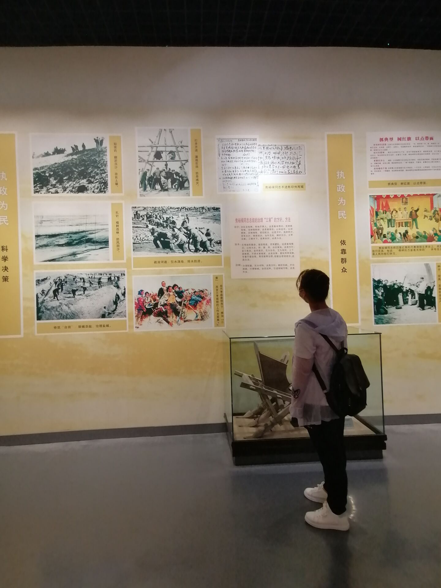 通过参观听取焦裕禄同志的生前事迹,我了解到焦裕禄同志为尽快改变兰考的贫困面貌,深入险地,踏遍兰考的每一处碱沟、风口和沙岗,深入百姓家,喝咸水,查冷暖,问良策,最终制定根治灾害,发展生产的蓝图的事迹。他这种为民造福的“赤子之心”和“不怕苦脏累”的大无畏精神深深感动了我。他心里装的是36万兰考人民群众的疾苦,身上始终彰显的是一个人民公仆的本色;他忘我地工作,身染绝症也全然不顾——鞠躬尽瘁,死而后已!他的感人事迹,时刻教育和激励着千千万万的党员、干部和广大人民群众。