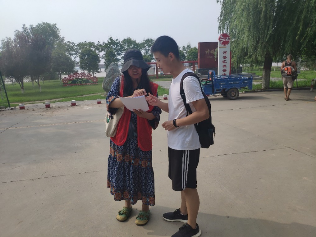 23日下午,队员前往保护区附近的村落对村民及村委会工作人员进行访问,在对村里面老一辈人的走访中了解到他们从小就在黄河边长大,据村民所说:“小时候经常会去黄河边摸鱼摸虾,尤其是黄河鲤鱼的数量特别多,遇到暴雨天气水库放水,随便一抓就能抓到几斤重的黄河鲤鱼。”但是由于近几十年生态环境遭到破坏,导致现在黄河内的鱼虾数量严重下降,不过近几年各项生态环境保护工程的建设,使得这些情况有所好转。在与村委会工作人员的交谈中,了解到游客在游览保护区时的环境保护意识还是不强,经常性的会留下垃圾在地上,不仅给工作人员增加工作量,而且容易进入黄河污染水质,影响水生生物的生存环境。