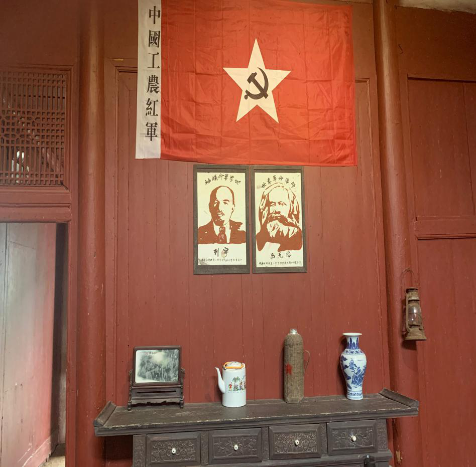 在长期的革命实践中,红色土地上留下了丰厚的革命历史文化遗存,如位于麦斜村委龚家村的毛泽东同志旧居、位于潭丘乡潭丘村的新干县苏维埃政府旧址、位于潭丘乡李家门村的新干苏区第一次工农兵代表大会旧址。7月25日,另一行调研小组成员来到了新干县革命史展馆(毛泽东故居)进行参观,这处旧址是一座坐西朝东的砖木结构民居,1930年7月21日,毛泽东、朱德率中国工农红军第一军团从永丰县出发,经峡江流源,于第二天下午2时到达龚家村。当天晚上,毛泽东住在村民龚槐福家的这栋房屋内,并在此签发了红一军团总部《攻击樟树的命令》。