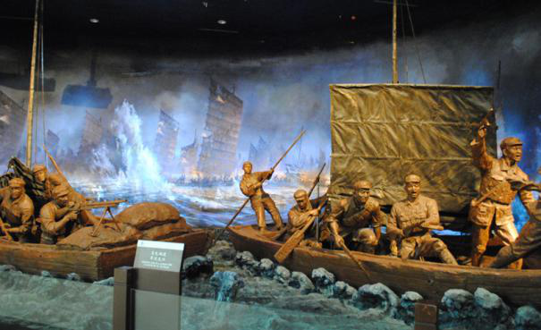 一进入纪念馆,象征解放战争胜利的浮雕便浮现在眼前,发自内心的景仰和激动漾在每一个组员的脸上。沿着指示走进去,馆藏的旧报刊,作战地图,甚至是作战计划书都在无声的诉说着战时的紧张。生锈的枪管,斑驳的水壶,以及满是疮痍补了又补的旧军装似是在大声抱怨着革命先辈们生活的艰苦。一转角,馆内陈列的渡江战役群像,仿佛是触了电般,思绪被拽回了那71年前战火纷飞的江面。各式馆藏的文物、塑像、浮雕,在令我们视觉震撼的同时,带给我们的更是精神上的洗礼,敬仰先辈革命斗志之余,更是感慨和平盛世的来之不易。伴着馆内高亢嘹亮音乐我们也结束了此次红色之旅。