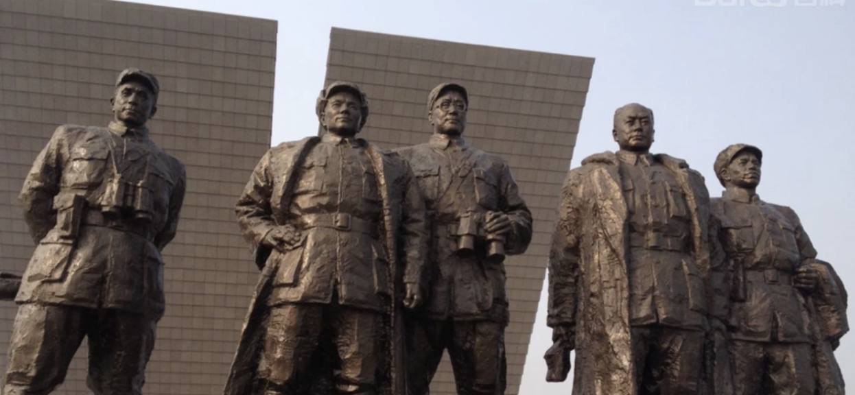 小红旗暑期社会实践小组第1支队成员于渡江战役总前委像前集合,开始参观之旅。渡江战役纪念馆自南向北由五角星胜利塔、总前委像和纪念馆组成。据资料显示,胜利塔高达九十九米,九九八十一,代表着“八一”军队的胜利,由空中俯瞰呈五角星形;伟岸的总前委群雕由全铜铸制,由东向西分别为粟裕、陈毅、刘伯承、邓小平和谭震林五位革命领导人。